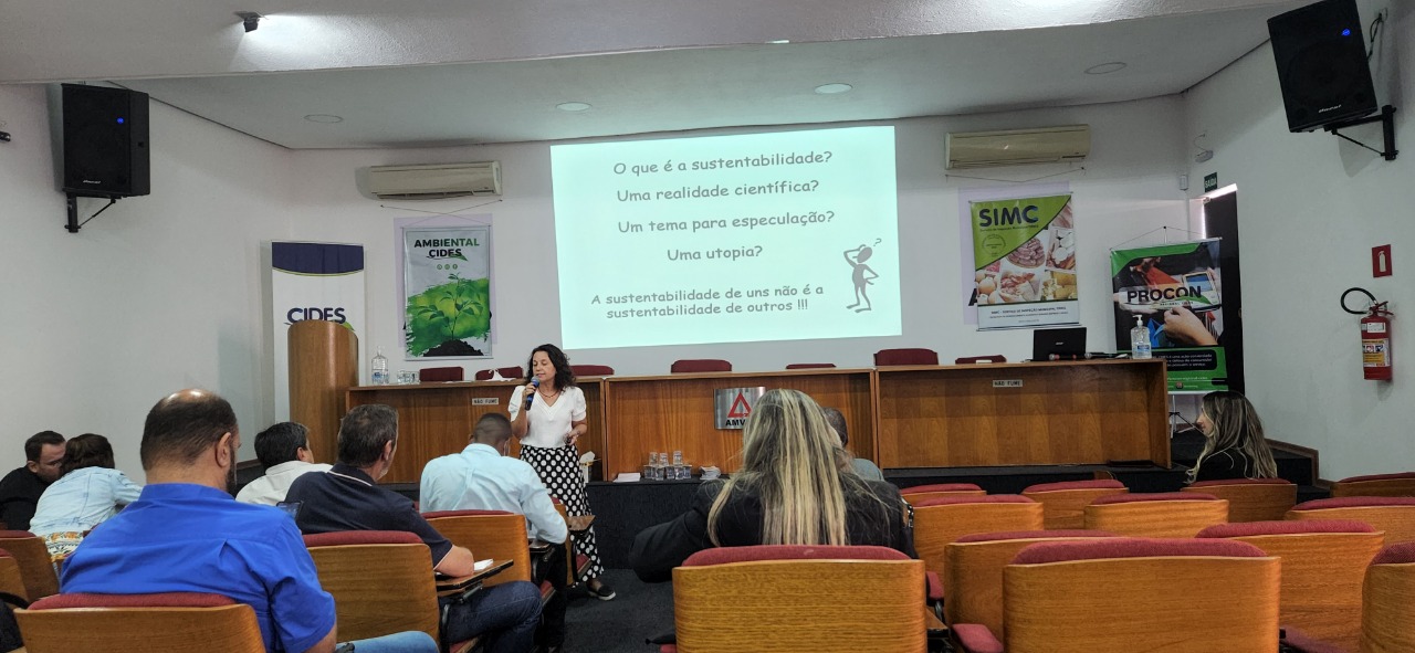 A palestra sobre “Gestão de resíduos sólidos: um dos caminhos para a sustentabilidade” foi ministrada pela Professora Doutora Gelze Serrat, geógrafa, com pós-doutorado em geografia, que falou sobre o projeto em parceria com o Cides. “Estamos encampando um projeto de extensão relacionado a coleta seletiva patrocinado pelo Cides, o evento teve esse caráter de apresentar alguns temas que são importantes para estes municípios em relação a segurança alimentar, a coleta seletiva e sustentabilidade e também de alguma certa forma desenvolver uma oficina voltada para compostagem”, explicou a professora do Instituto de Geografia, Gelze Serrat.